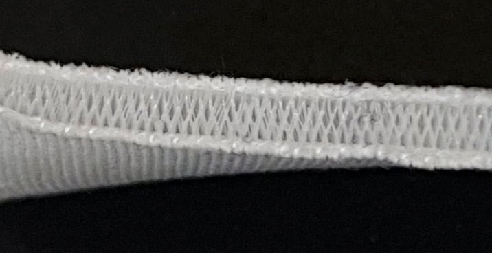 A traditional fabric is two-dimensional and made with two threads, but spacer is three-dimensional and has a further thread. If we look at a cross-section of spacer fabric, you can clearly see that it consists of three layers.