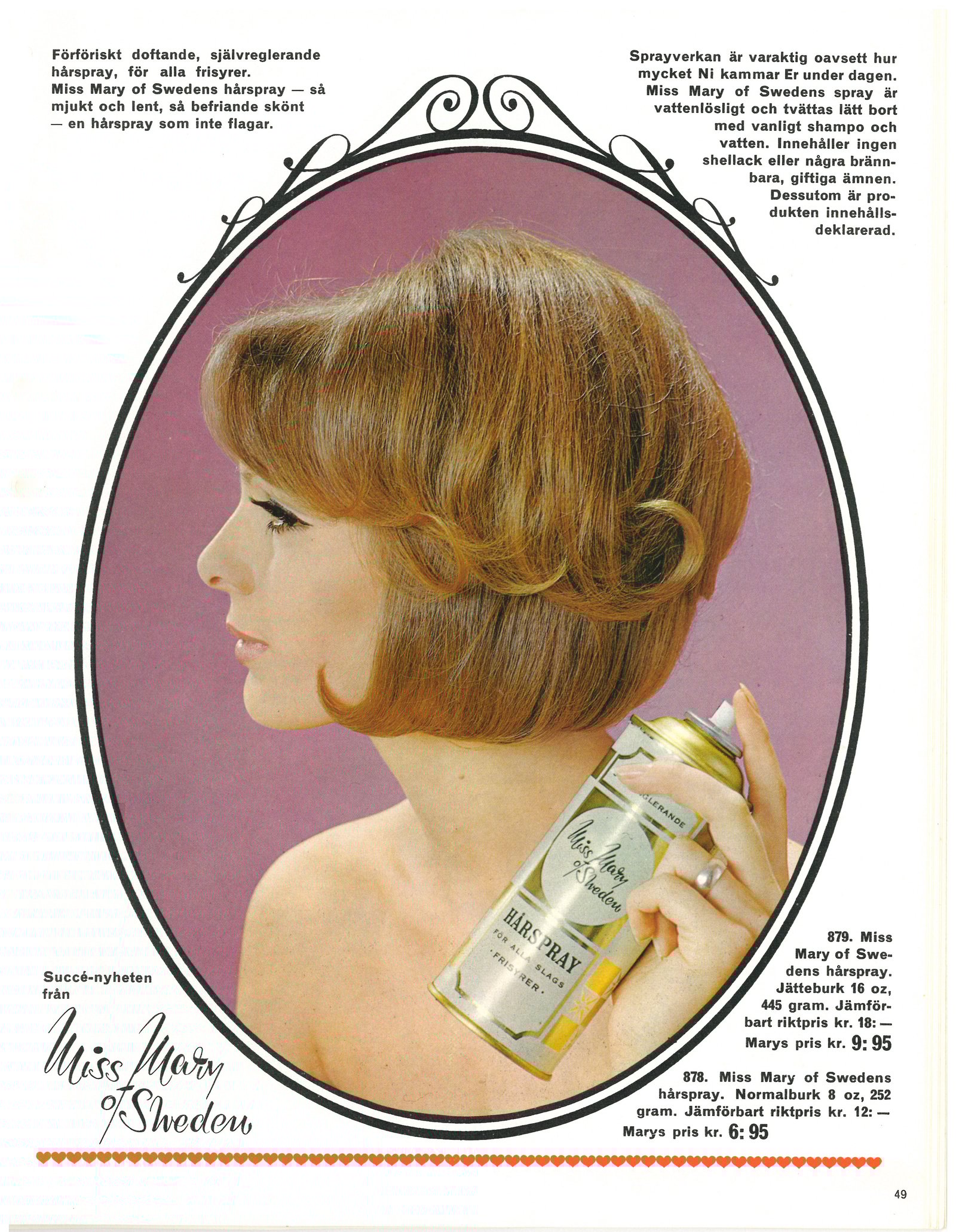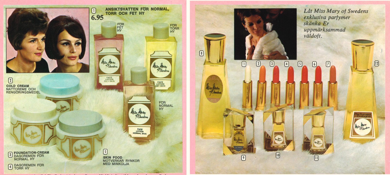Men Miss Mary var mer än bara kläder och underkläder under dessa decennier, vi erbjöd även skönhetsprodukter under vårt eget varumärke, allt från hårspray och smink till hudvårdsprodukter. Detta började vi redan sälja i början av 60-talet. 1966 kunde det se ut så här.