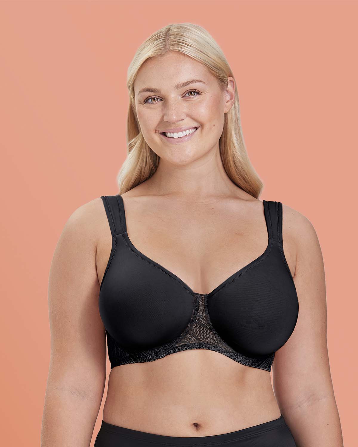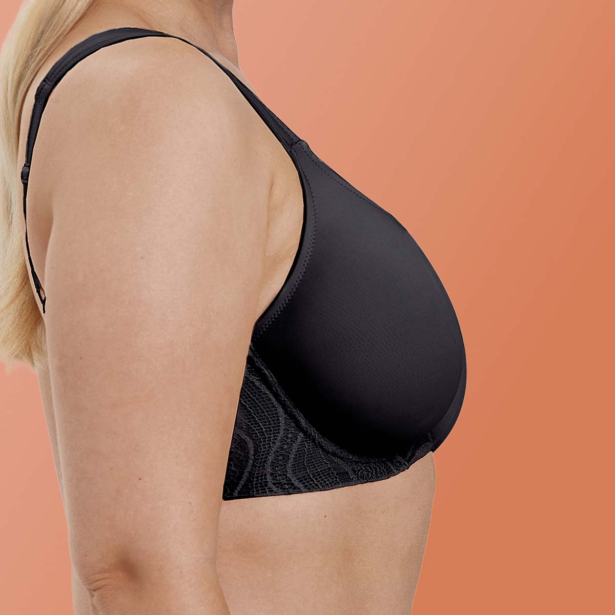 The Smart Shape underwired bra differs from our other bras in that the back provides the greatest benefit. It has an extra-wide back and the entire band is made of a double layer of material with a French seam, which prevents it from cutting in uncomfortably.